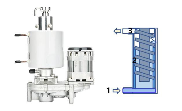 필터를 통과한 물을 시스템(Auger Type 제빙 모듈)에 공급하고 차가운 벽면을 따라 생성된 슬러시를 압착하여 너겟 얼음(Nugget Ice)을 만듭니다.